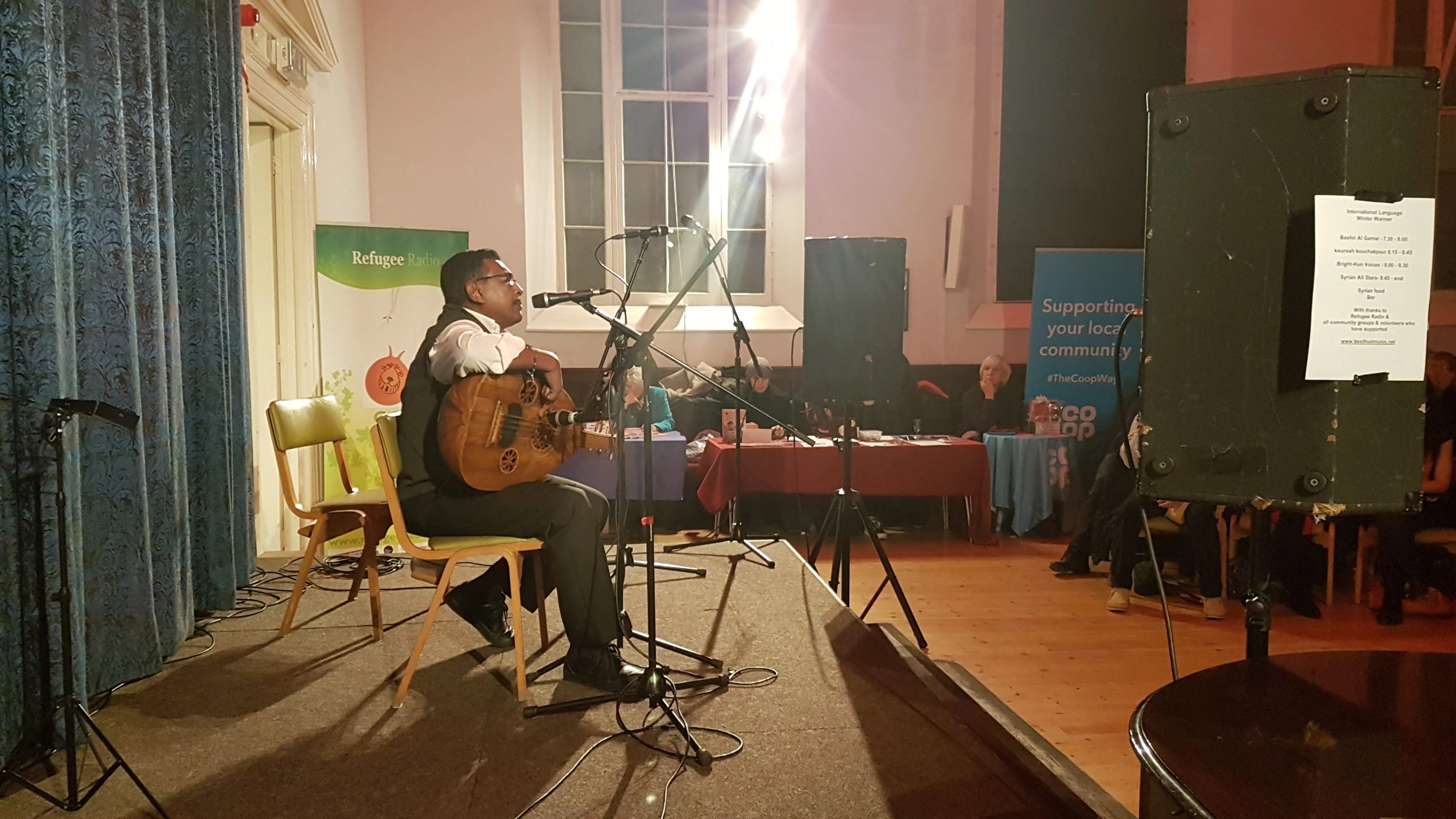 Live music on the night was by Bashir Al Gamar kourosh kouchakpour Bright-Hun Voices Hungarian Chamber Choir Sussex Syrian All Stars ​ The concert raised money for local community projects Mate Cafe & Bright Hun Voices as well as Bashir Al Gamar’s fund for his childhood village in Sudan, which has been greatly affected by war and famine in the country.